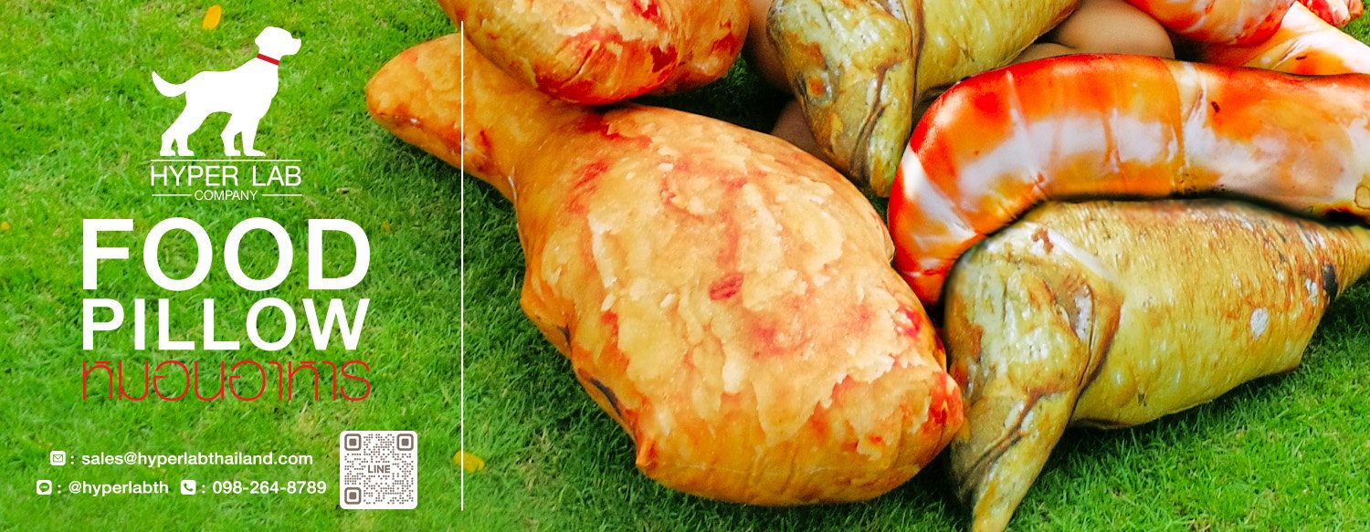 หมอนสกรีนรูปอาหารชนิดต่างๆเช่น ไข่ดาว, น่องไก่, กุ้ง, ปลาแซลมอน, ปลาทู และซูชิ สกรีนสีหน้าหลังพร้อมจัดส่ง