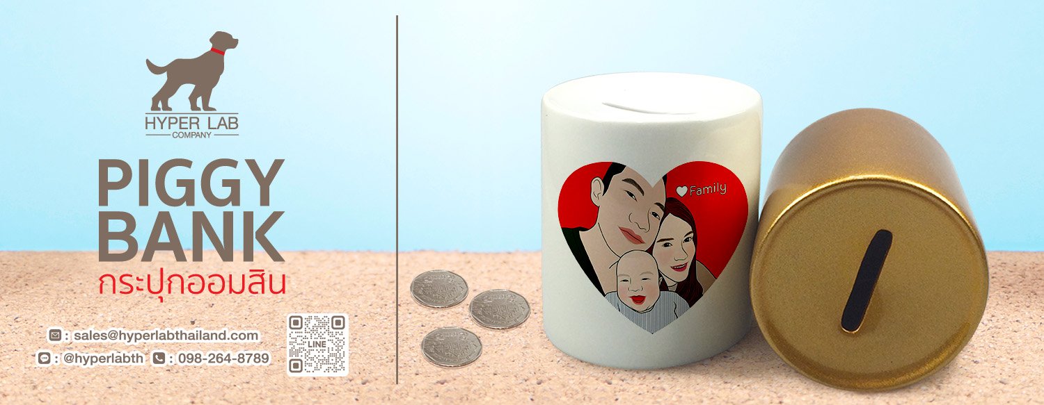 กระปุกออมสิน พิมพ์สกรีนสี พิมพ์ลาย Artwork, พิมพ์โลโก้, พิมพ์รูปวาดการ์ตูน, พิมพ์ภาพต่างๆ เรารับสกรีนรูปภาพลงบนกระปุกออมสินค่ะ มาทำกระปุกออมสินน่ารักๆ ให้น้องๆกัน ด้วยลายที่สวยงาม และสร้างจินตนาการดีๆ ประกอบกับนิสัยการอดออม ให้คนที่เรารักดีกว่าค่ะ ทาง HyperLab รับสร้างสรรค์ชิ้นงานแบบไม่มีขั้นต่ำในการสั่งผลิตนะคะ คุณลูกค้าจะสั่งเพียง 1 กระปุก หรือสั่งทำนำไปจำหน่ายต่อแบบเป็นล็อตใหญ่ๆ หลายๆโหล เราก็ยินดีค่ะ ต้องการใบเสนอราคาสามารถส่งอีเมล์มาหาเราได้ที่ sales@hyperlabthailand.com พร้อมแจ้งรายละเอียดได้เลยค่ะ